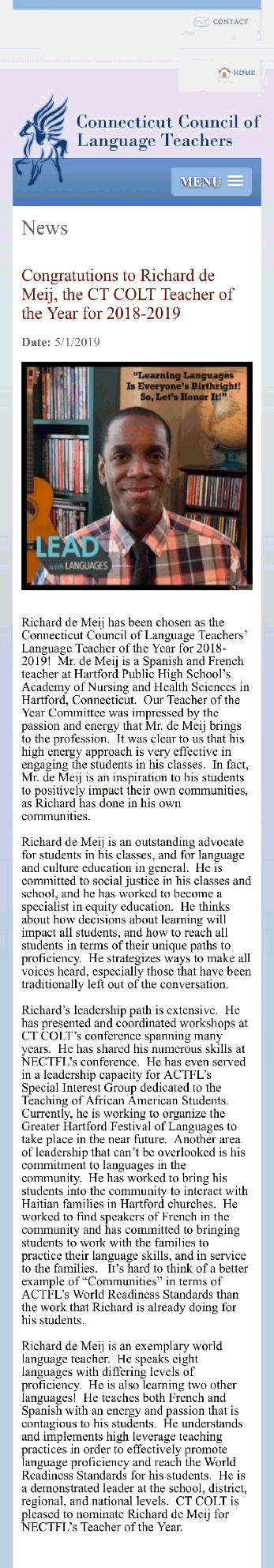 | I am the consummate language educator, polyglot, linguist, speech pathologist, dancer, musician, technologist, magician, social justice advocate and CT COLT’s Language Teacher of the Year! I use the unique combination of my multicultural/multilingual background, passion, ingenuity, humor, my expertise in diverse areas, my commitment to the 6 Core Practices & World Readiness Standards for Learning Languages, to connect the world of languages & cultures to my students’ personal worlds. In my classroom, I use a student-centered total immersion approach to teach for proficiency. And in my community, I endlessly advocate for equitable access to high quality language education for all learners, fueled by my belief that “learning languages is everyone’s birthright!” |